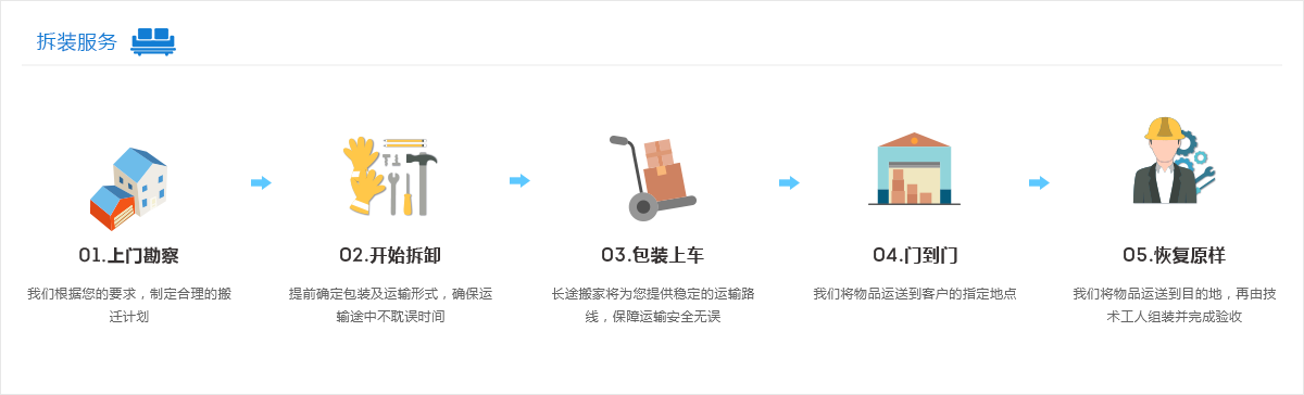 家具拆裝服務(wù)是政府認可的、正規(guī)的專業(yè)家具拆裝,大象搬家管理,技術(shù),人才的整合優(yōu)勢,迸發(fā)強大的團隊作戰(zhàn)能力。實現(xiàn)了搬家公司提出的以強大資本為后盾,把現(xiàn)代化的經(jīng)營理念和傳統(tǒng) 行業(yè)相嫁接的戰(zhàn)略規(guī)劃。